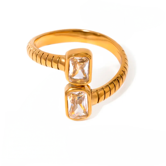 Anillo Galilea – Dorado con Piedra Translúcida Orgánica