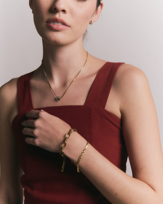 Collar Clara Dorado – Diseño Atemporal en Titanio con Perla Blanca y Cadena Trenzada