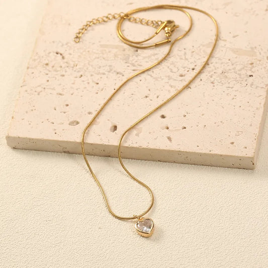 Collar Heart Dorado de Acero de Titanio – Dije de Corazón, Hipoalergénico y Ajustable