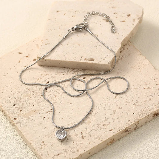 Collar Heart Plateado de Acero de Titanio – Dije de Corazón Minimalista, Hipoalergénico y Ajustable