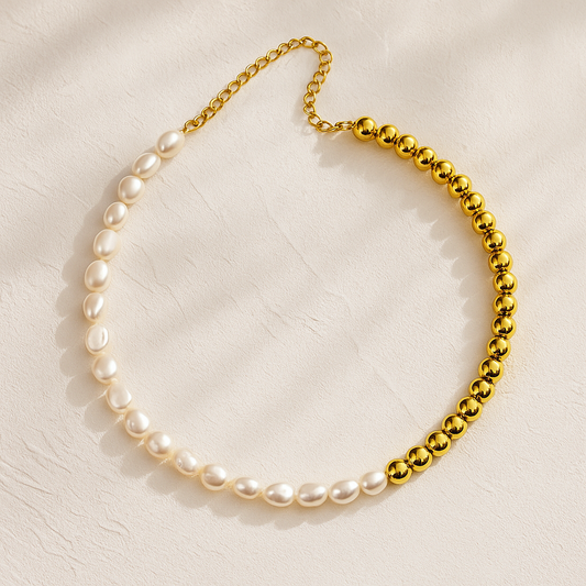 Collar Palma de Mallorca – Perlas Barrocas y Esferas en Acero de Titanio