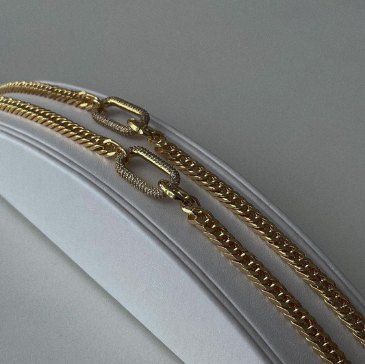 Collar Toledo de Acero de Titanio – Eslabones Alargados Dorados, Elegante y Versátil