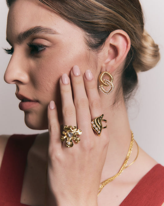 Anillo Samantha Ajustable Dorado en Acero de Titanio Hipoalergénico