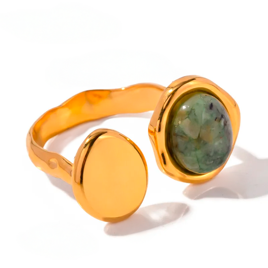 Anillo Oliva Ajustable – Dorado con Detalle Verde de Acero de Titanio