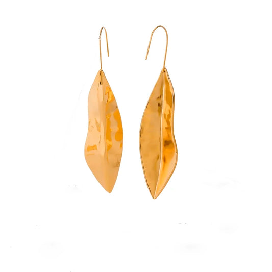 Aretes Hoja Dorados Acero Titanio Hipoalergénicos