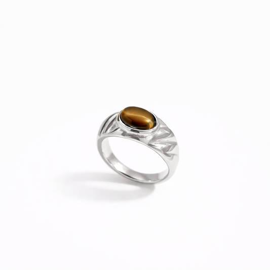 Anillo Ojo de Tigre con Piedra Ámbar Ovalada Acero de Titanio