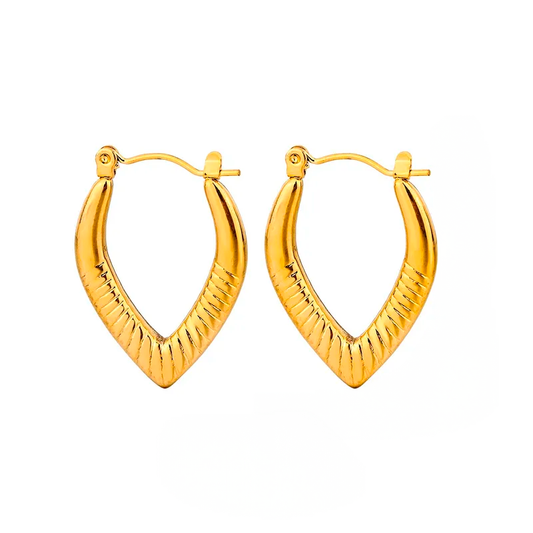 Aretes Elena Dorados – Argolla en Forma de V Invertida con Acabado Brillante