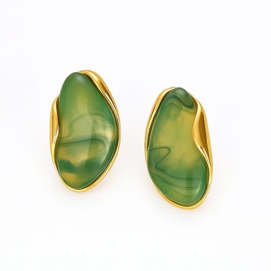 Aretes Trópico Dorados – Diseño Escultórico con Resina Traslúcida