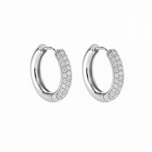 Aretes Raisa – Argollas Medianas en Titanio Dorado y Plateado con Circonias Cúbicas