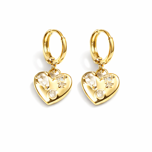 Aretes Sam – Aros con Corazón y Zirconias en Acero de Titanio