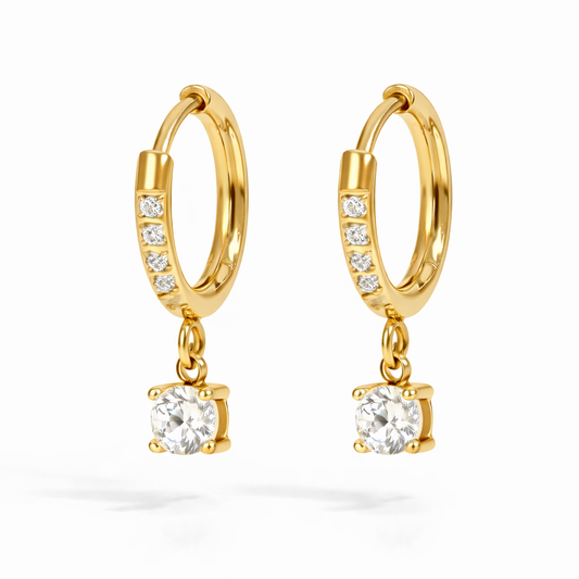 Aretes Marlene – Argollas de 10 mm con Zirconia Colgante en Acero de Titanio
