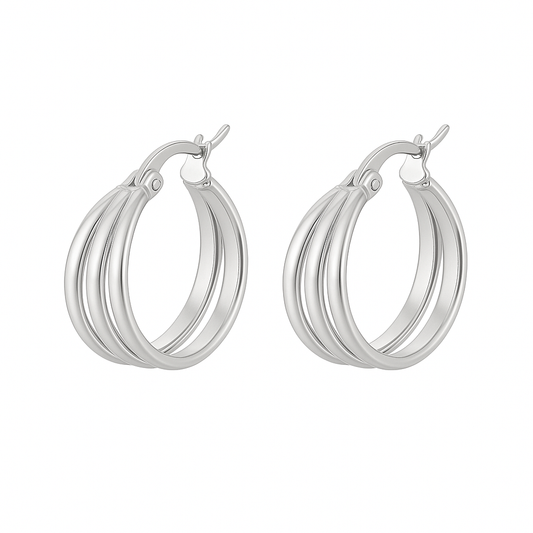 Aretes Eloisa – Argollas Medianas Triple Aro en Dorado y Plateado
