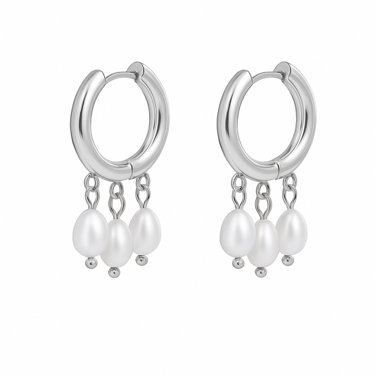 Aretes Leticia – Argollas Medianas en Titanio Dorado y Plateado con Perlas Naturales