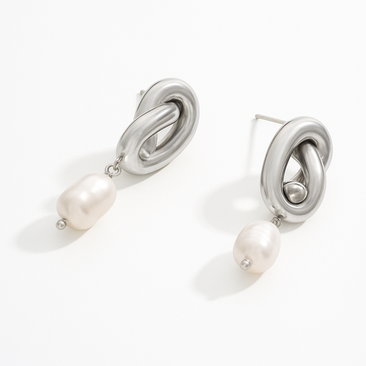Aretes Altea – Diseño Escultórico en Dorado y Plateado con Perla Barroca Natural