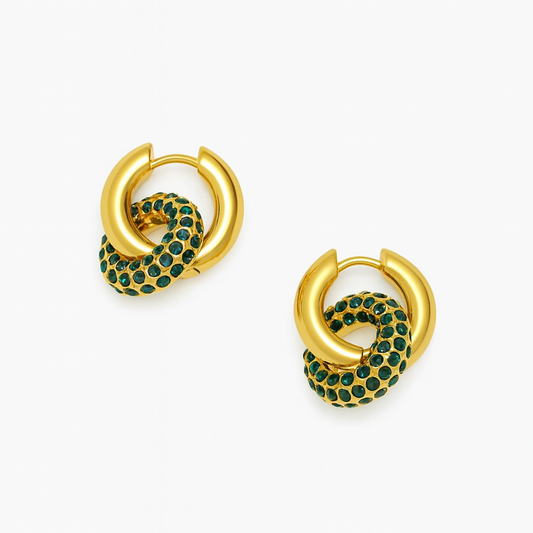 Aretes Catalina – Diseño Escultórico en Titanio Dorado con Perlas, Verde Esmeralda o Circonitas Blancas