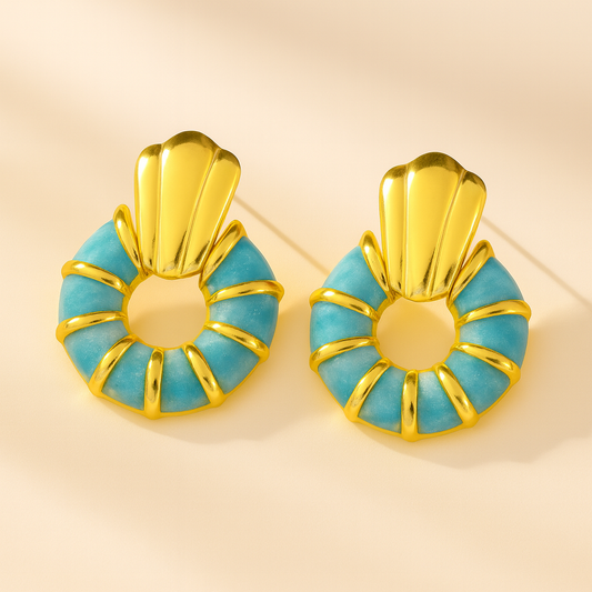 Aretes Retro – Diseño Artístico Multicolor en Acabado Dorado