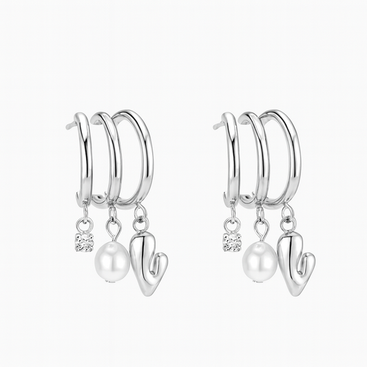 Aretes Marselline – Diseño Escultórico Bicolor en Titanio con Aros y Colgantes de Corazón, Perla y Cristal