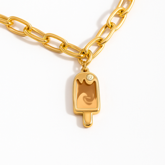 Charm Paleta de Helado – Dulzura en Acero de Titanio Dorado