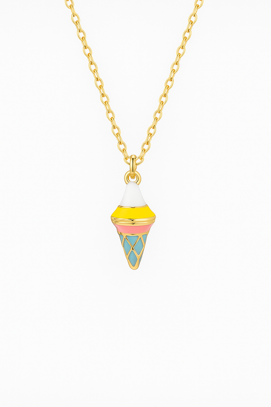 Charm Cono de Helado – Alegría Dorada en Acero de Titanio