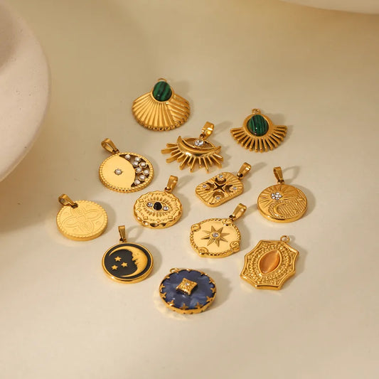 Charm Luna Anaranjada – Energía Lunar en Acero de Titanio con Detalle Cálido