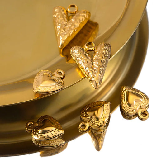 Charm Placa de Corazón Inicial A–Z – Personaliza tu Joyería con Acero de Titanio Dorado