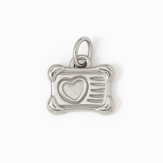 Charm Cámara Fotográfica – Diseño Tridimensional en Titanio Dorado con Detalles Artesanales