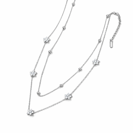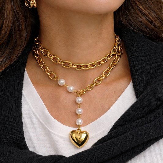 Collar Amara de Doble Cadena Dorada con Dije Nacarado