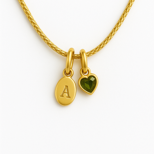 Collar Carolina – Diseño Artesanal en Titanio Dorado con Dije en Forma de Corazón y Placa Ovalada Grabada a mano