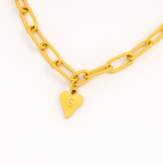 Charm Placa de Corazón Inicial A–Z – Personaliza tu Joyería con Acero de Titanio Dorado