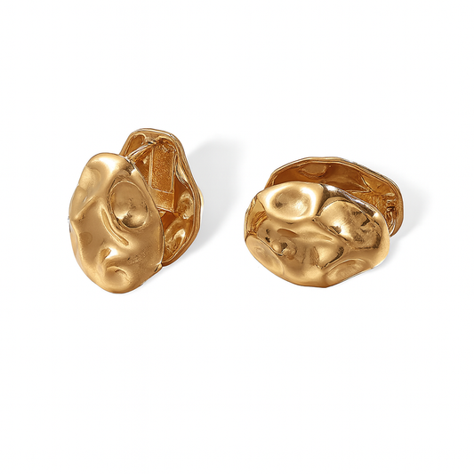 Aretes María Dorados – Pequeños con Diseño Irregular y Efecto Martillado