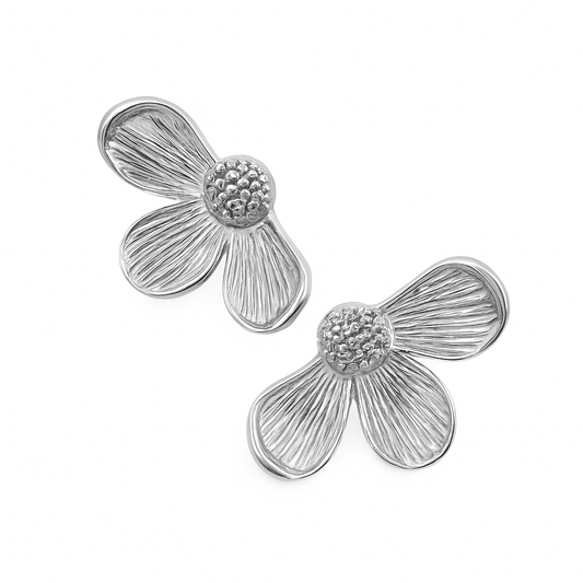 Aretes Pétalos – Flor Estilizada en Titanio Dorado, Plateado y Bitono con Centro Martillado