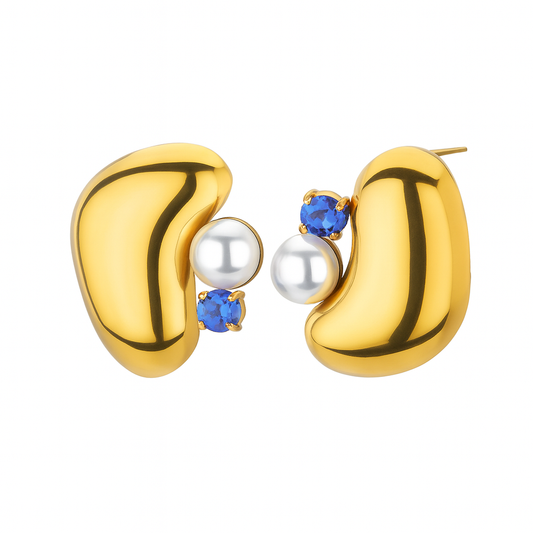 Aretes Hermes – Diseño Orgánico en Titanio Dorado con Circonia Cúbica y Cristales en Blanco, Azul o Verde
