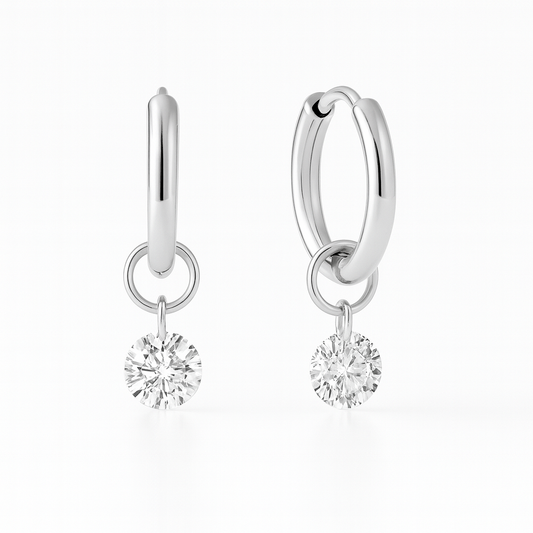 Aretes Antonieta – Argollas de Titanio Hipoalergénico con Dije Circular Brillante
