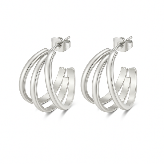 Aretes Eloisa – Argollas Medianas Triple Aro en Dorado y Plateado