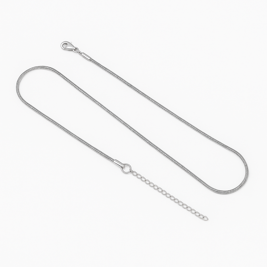Su diseño de 40 cm de largo más 5 cm de extensión ajustable permite adaptarla cómodamente al cuello, logrando un ajuste delicado y flexible que se amolda a cada ocasión. El cierre de mosquetón seguro asegura practicidad, mientras que su estructura continua y ligera le otorga un movimiento natural que acompaña tu look con sofisticación.