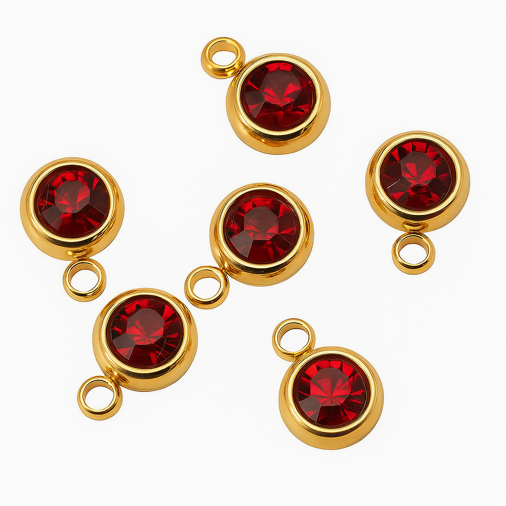 Charm Perla Azul Mar, Rojo Pasión, Rosa, Verde Esmeralda y Blanco Reluciente – Elegancia Delicada en Acero Dorado